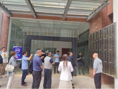 何社长一行参观结束后,与实验室研发人员进行了座谈交流。齐毅书记首先代表学院欢迎云南报社集团何社长一行到云南省人工智能重点实验室调研交流,并介绍了学院以及实验室近年来的发展情况。