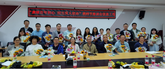 在信自楼237会议室举办了“我为群众办实事”系列活动之2021年“赓续百年初心 担当育人使命”教师节座谈会。学院党委书记齐毅、正处级组织员黄荣军、副院长钱斌、李英娜、王红斌、工会主席赖华、综合办主任汪涛、学工办主任郑婷婷以及学院教学名师和近三年新入职的青年教师参加了本次座谈会。会议由工会主席赖华主持。
