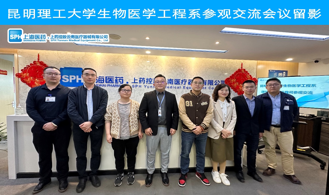 生物医学工程系教师马磊、汤守国、徐家萍、熊馨到上药云南器械参观交流。上药云南器械医学工程部经理杨李、医学工程部销售经理李东苍、用户服务部经理熊济、行政人事部经理赵燕婷;广东上药桑尼克医疗科技有限公司云南省区经理张雄参加交流会,会议由医学工程部经理杨李主持。
