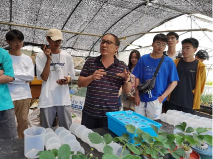 活动分为农业水培种植基地参观、蔬果种植知识学习和动手种植生菜三个环节,邀请到农工学院苏有勇教授进行讲解和指导。在参观过程中,苏有勇老师详细介绍了简易水肥一体化施肥技术在设施果蔬立体栽培中的运用,以及不同营养条件、环境条件等对生菜生长的不同影响等知识。同学们也在苏老师的指导下,自己动手种植了生菜盆栽,现场劳动氛围热烈。