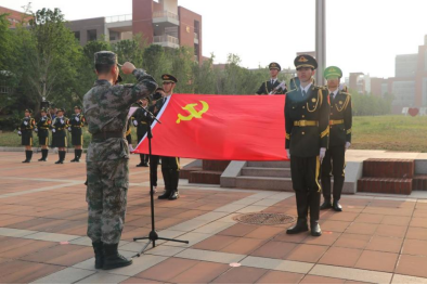 退役复学学生党员张易航带领全体党员同志面向党旗庄严宣誓,重温入党誓词。最后,由少数民族学生带领全体师生共唱《歌唱祖国》。