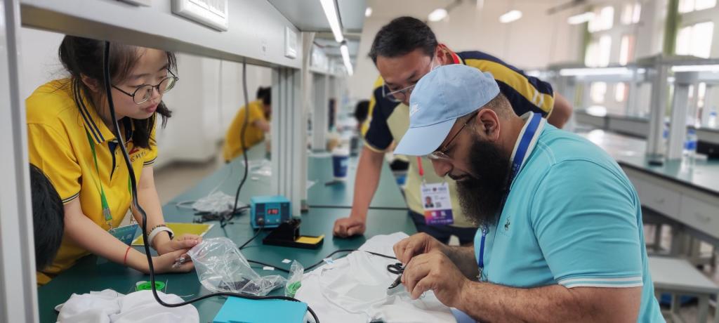 电工电子实验教学团队指导青少年们分组协作,从创意构思到设计实现全程参与,共同打造出发光T恤衫、电子指尖陀螺、光电小风车等充满创意的作品。这些作品不仅展现了青少年们的无限创意与精湛技艺,更成为了他们友谊与合作的珍贵见证。参与活动的青少年纷纷表示,这次经历让他们受益匪浅,不仅学到了很多实用的科技知识,还拓宽了国际视野。