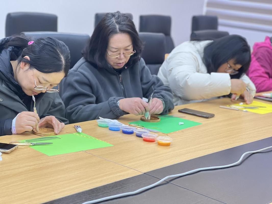 教职工文化生活,缓解工作压力,提升艺术素养,近日学院工会在信自楼237会议室举办了“只此青绿”掐丝珐琅手工体验活动。生医系、通信系、电工电子中心、计算中心等部门的教职工积极参与其中。