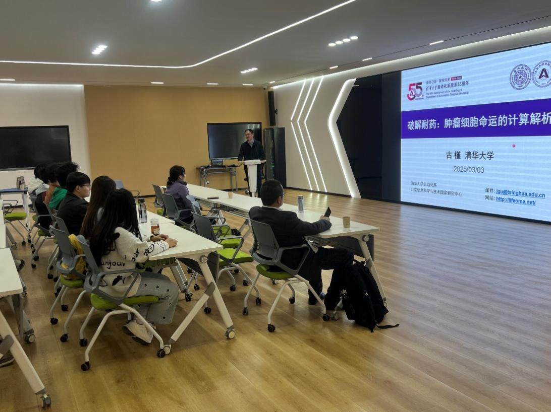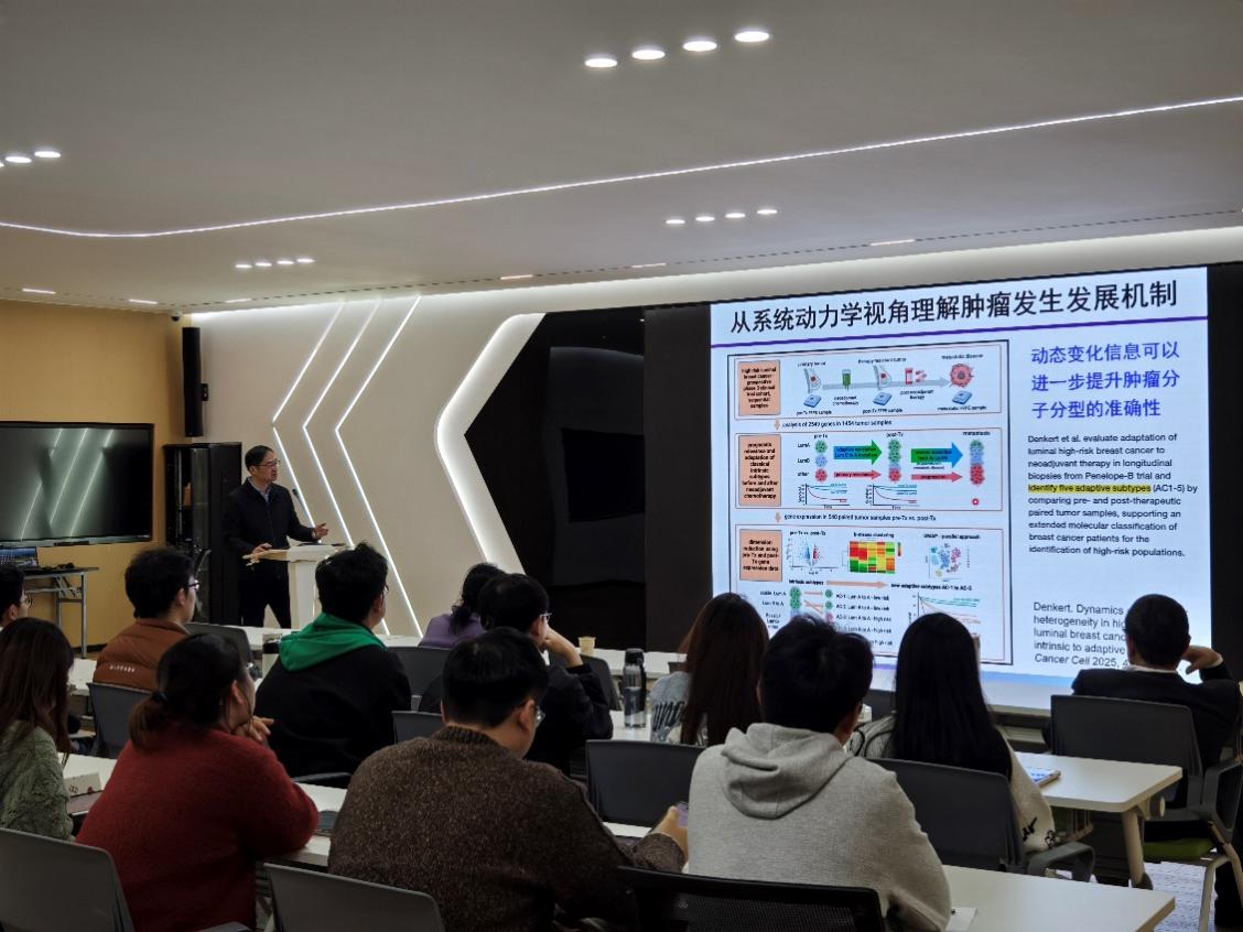 古槿教授的报告内容深入前沿,紧密结合单细胞测序、生物信息学与计算方法的最新进展,展现了计算技术在精准医疗和生物信息学领域的巨大潜力。与会师生纷纷表示受益匪浅,不仅对单细胞组学在抗肿瘤药物研究中的应用有了更深入的认识,还对流形学习、最优传输、图模型等前沿计算方法在生命科学中的创新应用有了更清晰的理解。进一步引发了师生们对肿瘤耐药性研究,探索肿瘤微环境、免疫应答及个体化治疗等领域的广泛兴趣。