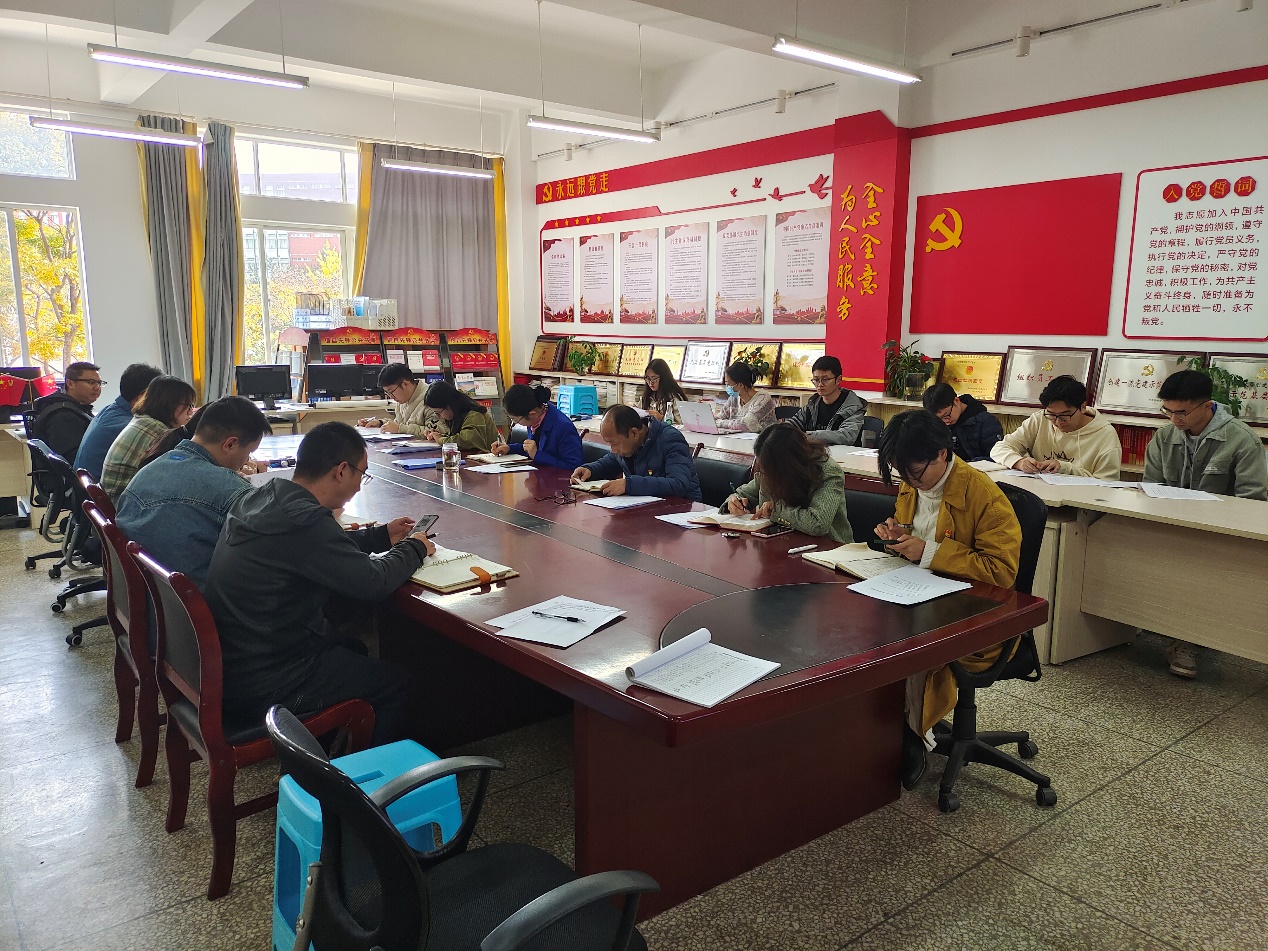 首先由齐毅书记带领全体党支部书记学习了习近平总书记在省部级主要领导干部学习贯彻党的二十届三中全会精神专题研讨班开班式上的重要讲话。讲话中,习近平总书记强调了深入学习贯彻党的二十届三中全会精神的重要性,并要求全党全国人民坚定改革信心,凝心聚力推动改革行稳致远。齐毅同志指出,作为基层党委和党支部,我们要积极响应党中央的号召,做好基层建设,为全面深化改革贡献力量。同时齐毅书记通报了10月基层党委书记例会的纪要,涉及食品安全、理论武装、校园安全等方面,并提出了改进措施和详细的下一步工作安排。