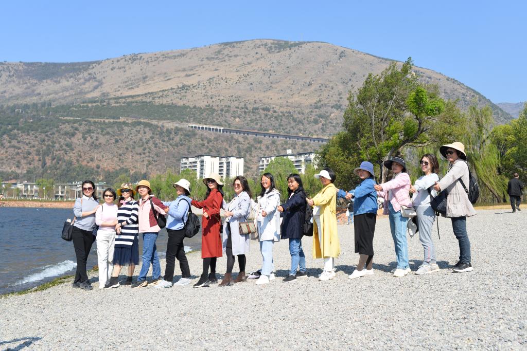 当天早上,参与活动的女教职工们乘坐大巴车前往风景秀丽的阳宗海。抵达目的地后,大家漫步于蓝天白云下的美丽湖畔,欣赏着湖边的花草树木,不时停下脚步拍照留念,感受着大自然的宁静与和谐。