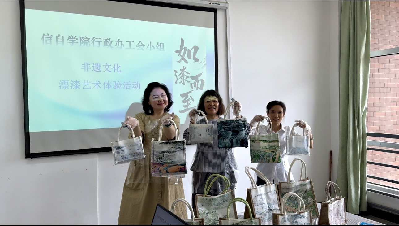 行政办工会小组着眼于满足教职工的精神文化生活新期待,于6月6日在信自228成功举办非遗漂漆体验活动,让教职工们感受中国传统大漆飘逸天成的美。