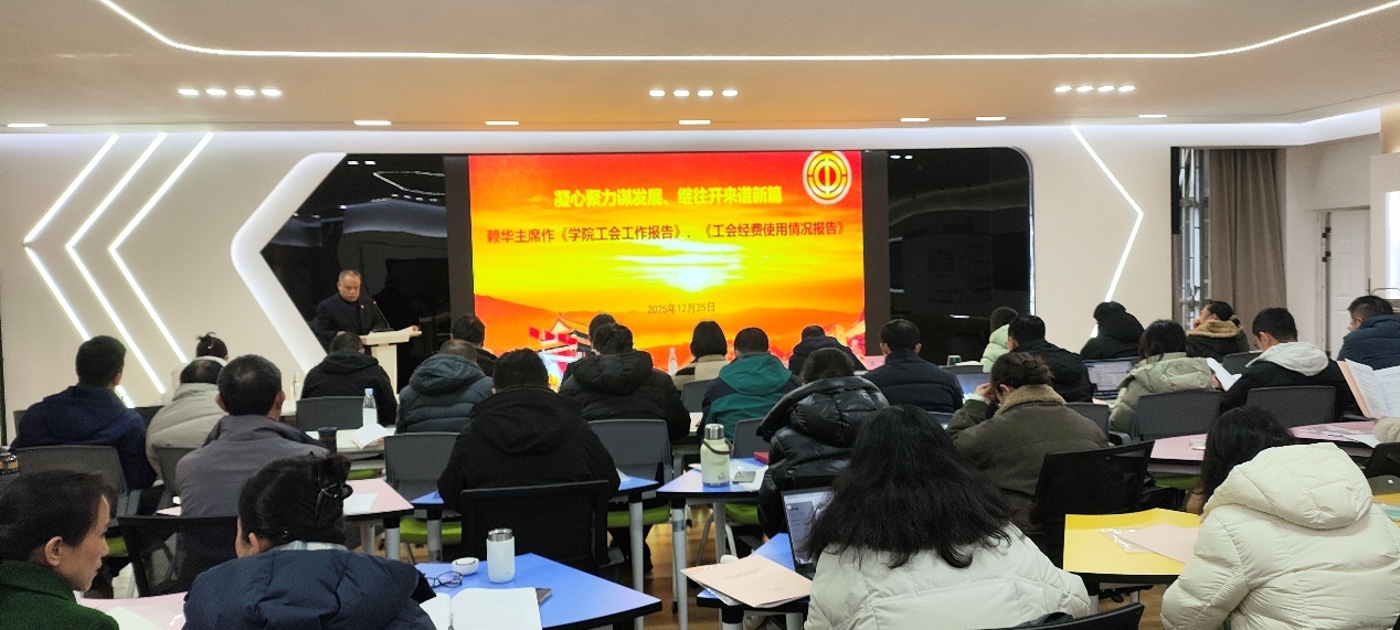 随后,工会主席赖华作《学院工会工作报告》与《工会经费使用情况报告》。报告全面总结了上一届工会在维护教职工权益、丰富文体活动、助力学院发展等方面的工作实绩,清晰梳理了工会经费的收支与管理情况,并对未来工会工作的重点方向提出了规划。