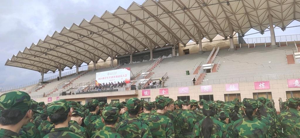 2021级学生军训开训动员大会上徐徐升起的国旗,2021级学生为期14天的军训也全面拉开了序幕。