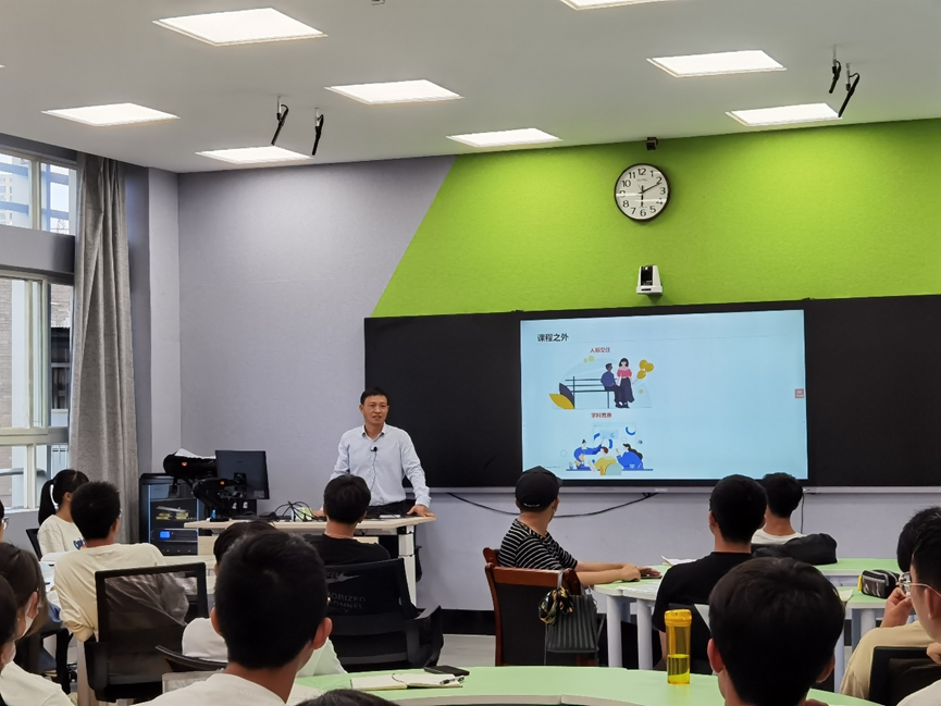 第二,为了帮助2022级新生转换学习思维,顺利从高中学习模式过度到大学学习模式,谢明鸿老师为2022级新生带来了以“大‘学’应该如何度过?”为题的学业规划指导专题。谢老师围绕“大学要学啥”“大学该如何学”“如何规划未来”“如何看待考研”“做一个有故事的人”等五个方面,从选课、学习方法、学业规划、考研等内容为新生上了一节生动的学业规划指导课。