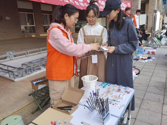 此次活动以“跳蚤市场”的形式,集中社区同学的二手可循环利用的闲置物品,为全校学生提供一个交易平台。售卖开始前,工作人员就将物品都整齐摆放在摊位上,供同学挑选。售卖正式开始时,琳琅满目的物品吸引了众多同学,摊位上出售的商品种类繁多。摊位旁,志愿者贴心地为前来挑选的同学提供服务,热情地向前来光顾的同学介绍物品信息,详细地为每一位同学提出的问题进行解答,并且在交易完成后认真地登记售出物品的信息。
