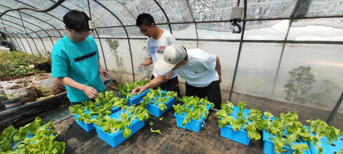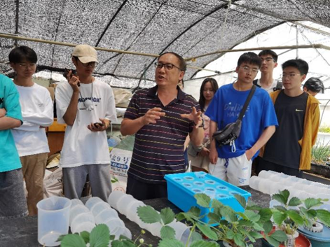 活动分为现代农业工程学院果蔬无土栽培基地参观、蔬果种植知识学习和水培生菜栽培三个环节,邀请到农工学院苏有勇教授进行讲解和指导。在参观过程中,苏有勇老师详细介绍了蔬菜工厂化栽培技术、水肥一体化技术在设施果蔬无土栽培中的运用,以及营养条件、环境条件等对果蔬(生菜、草莓)生长的影响等知识。同学们还在苏老师的指导下,自己动手开展水培生菜盆栽种植,现场劳动氛围热烈。