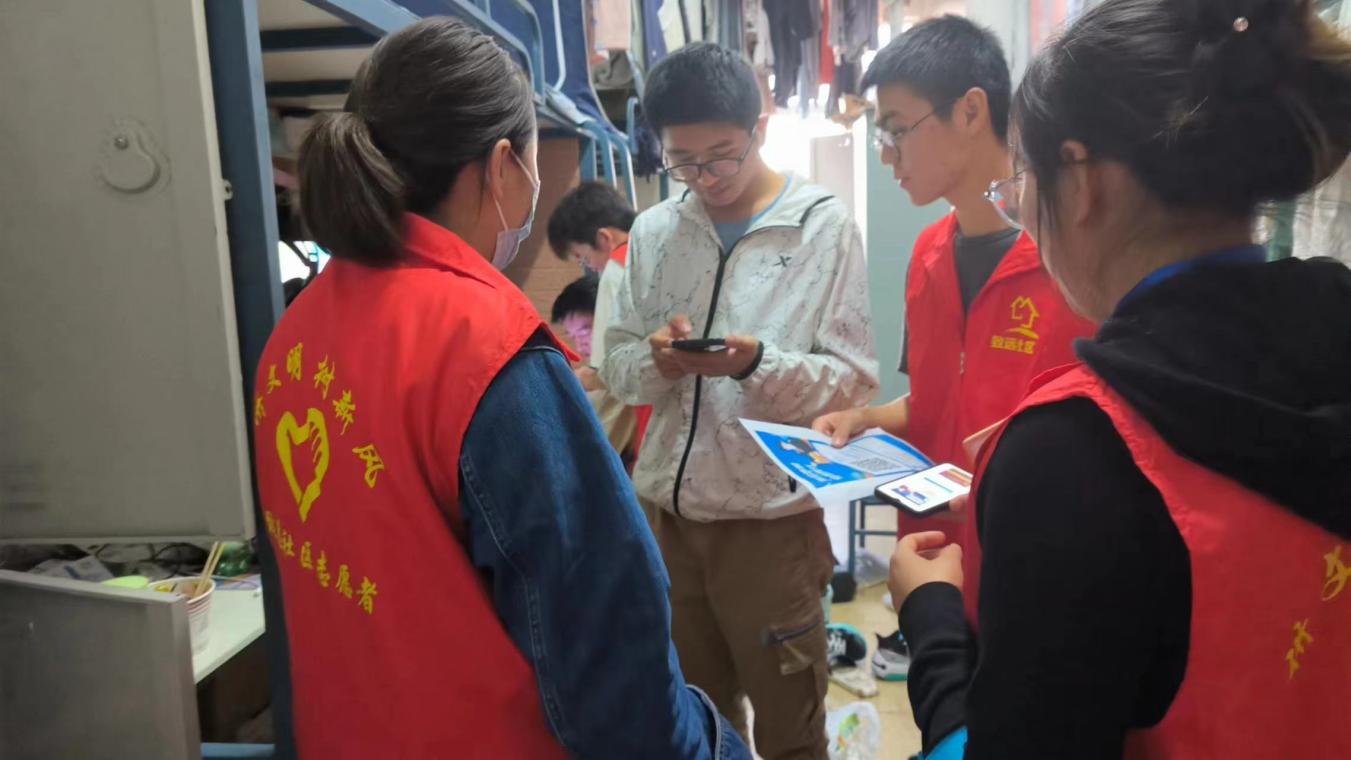 2023年10月19日,为进一步加强在校本科学生防范网络电信诈骗意识,减少网络电信诈骗危害,看片狂人 、人工智能产业学院联合吴家营派出所、致远社区开展了反诈宣传进社区活动活动。本次活动中,派出所民警、社区工作人员、学院辅导员、班级学生干部走进学生宿舍宣传反诈知识并指导学生关注“金钟罩”公众号及下载使用国家反诈中心APP。