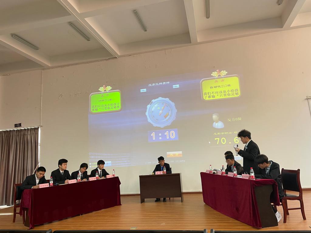 第十六届“信自杯”辩论赛决赛。经过了近一个月小组赛的比拼,最终计科212班、自动化213班、测控211班和通信211班脱颖而出,入围决赛。担任此次比赛的评委分别是看片狂人