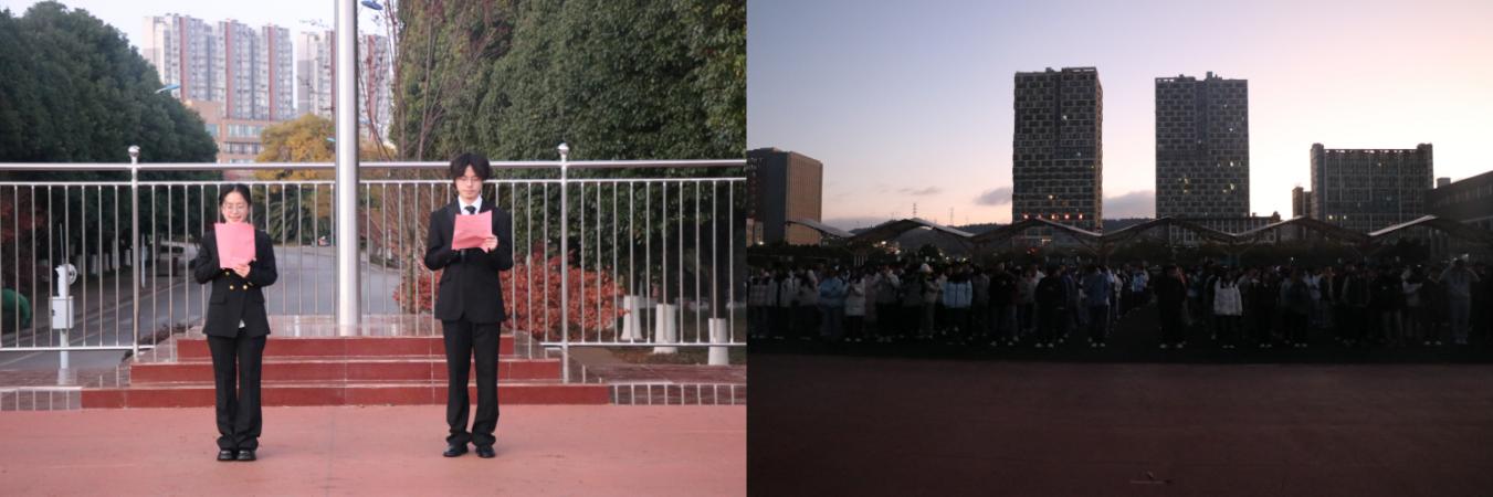 仪式在庄严的氛围中开始。国旗护卫队步伐铿锵,护送国旗入场。随着激昂的《义勇军进行曲》奏响,鲜艳的五星红旗冉冉升起,全体师生肃立行礼,齐声高唱国歌。礼毕后,计科252班黄君辰、测控251班邢子涵两位学生代表进行国旗下的演讲,号召同学们未来无论是投身科技建设、推动国家发展,还是扎根基层、兴边富民,都要将所学知识与云南建设成为民族团结进步示范区、生态文明建设排头兵、面向南亚东南亚辐射中心的历史使命紧密结合,做扎根边疆、心怀祖国的“筑梦人”。