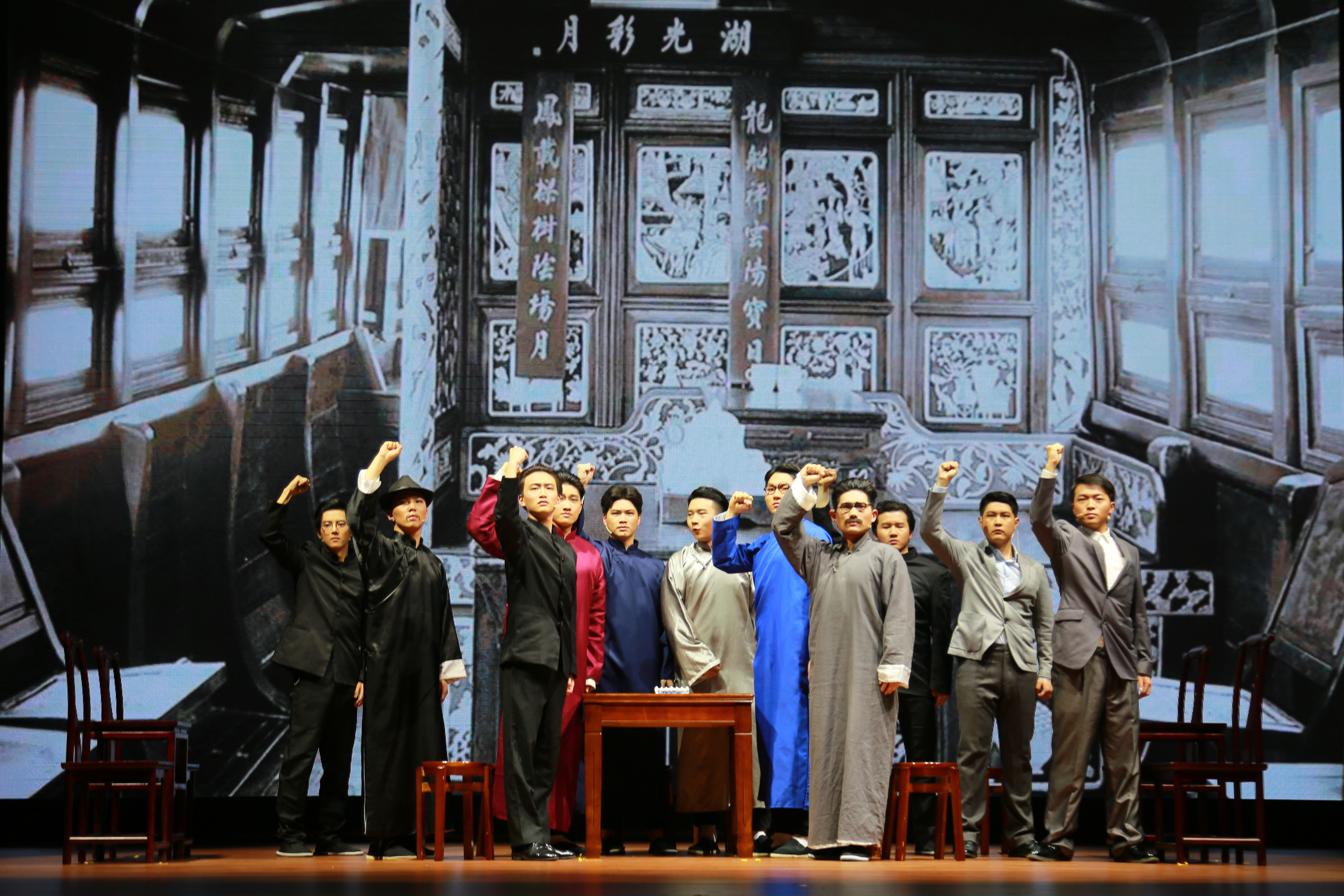 话剧《红船》为2020年南京艺术基金资助项目,由我校师生自编、自导、自演,以“一叶红船承载的红色基因”为线索,重现了毛泽东、董必武等13位一大代表创立中国共产党的光荣历程和辗转波折,再现了建党的恢宏时刻,讴歌了早期共产党人开天辟地、敢为人先的首创精神,坚定理想、百折不挠的奋斗精神,立党为公、忠诚为民的奉献精神,谱写了一部“弘扬‘红船精神’、传承初心使命”的时代赞歌。演出跌宕起伏,引人入胜,引发了现场师生阵阵掌声。展演在全体演职人员们同唱《没有共产党就没有新中国》的铿锵歌声中顺利结束。