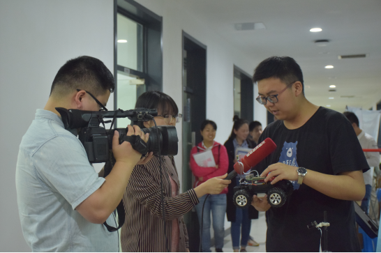 科创节开幕式于省锡中“想象·创造”课程基地举行,我校招生宣传组带来的人工智能(无人车)、智能小车、旅游机器人和平衡车等四件巡展作品吸引了大量学生参观学习。同学们认真观看我校学生科创作品的操作模式,并就参展作品的设计理念、创作过程、应用前景等话题与我校学生志愿者展开交流。借此机会,工学院四位学生志愿者也热情地跟现场的同学们分享了自己在南农的学习和生活经历,部分同学和志愿者留下了联系方式,希望今后就学业和专业学习进行更多的交流。