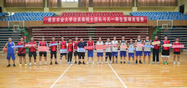 值得一提的是,近年来在南京农业大学每年都要上演的院士师生篮球赛也打到了中学赛场!1个多小时的时间,沈其荣院士及其团队研究生与天一中学师生进行的篮球友谊赛酣畅淋漓,接球、起跳、投篮、命中,现场观众为院士的矫健身手、与队友的默契配合欢呼鼓掌。