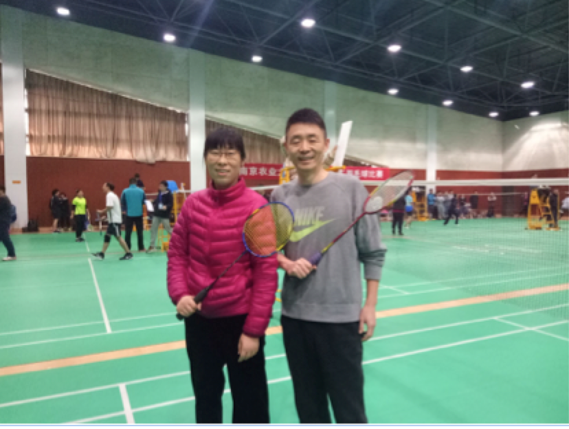 混双(刘强强,贾文)的对手也很强,我们的对手平时经常打球,而我院的教工平时都没有时间锻炼,比赛一开始,我们就落后对手好几分,对手连得4-5,但是队员们并没有气馁,而是积极调整,相互鼓励。在调换场地之后,我们实现了反转,打了一个小高潮,也连续得4分,渐渐拉平了比分,双方比分一直咬的很紧,最终我院混双以21:19顽强拿下比赛。