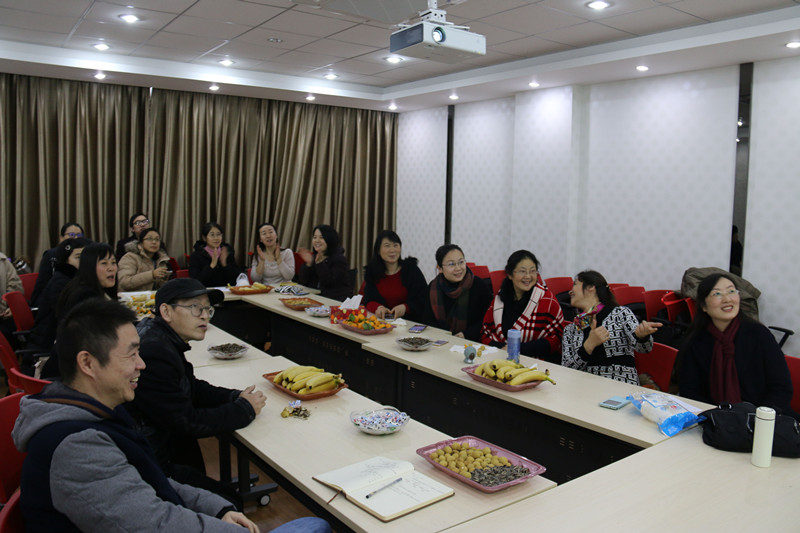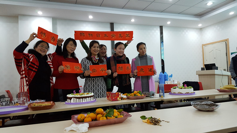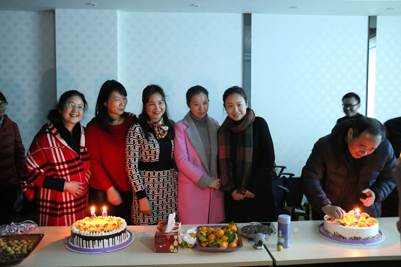 12月21日农历冬至日,一个喜庆而祥和的日子。外国语学院全院上下共同为李妙贤、赵军、许家平、陈筱婧和钱叶萍五位美女教工庆贺整岁生日。是日,在学院宣传屏上滚动播放着祝福寿星生日快乐的红色字幕,院工会委员们早已将生日蛋糕、各式水果和零食准备妥当。