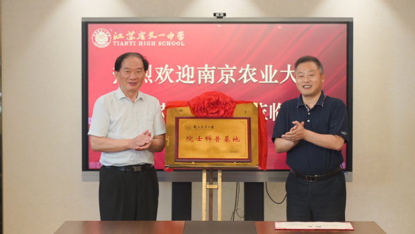 据了解,江苏省天一中学是江苏省高品质示范高中,自2015年与南京农业大学签订优质生源基地以来,两校先后合作共建了“生态校园课程基地”、“生态教室”、“农作物示范带”,开展了原创话剧《红船》展演进中学、科普讲座进中学等活动。